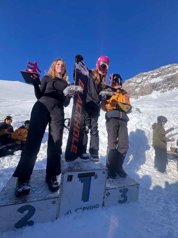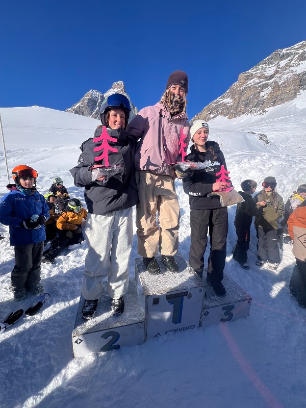 Lo snowpark di Cervinia ha regalato una giornata perfetta per la gara di Slopestyle: sole splendente, neve in condizioni ideali e un’atmosfera carica di energia. La competizione si è svolta nella parte bassa del park, con un course tecnico composto da tre salti e una piattaforma di rail con un Rainbow e un tubo in discesa.